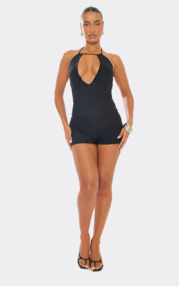 Plunge Stud Trim Detail Playsuit In Black