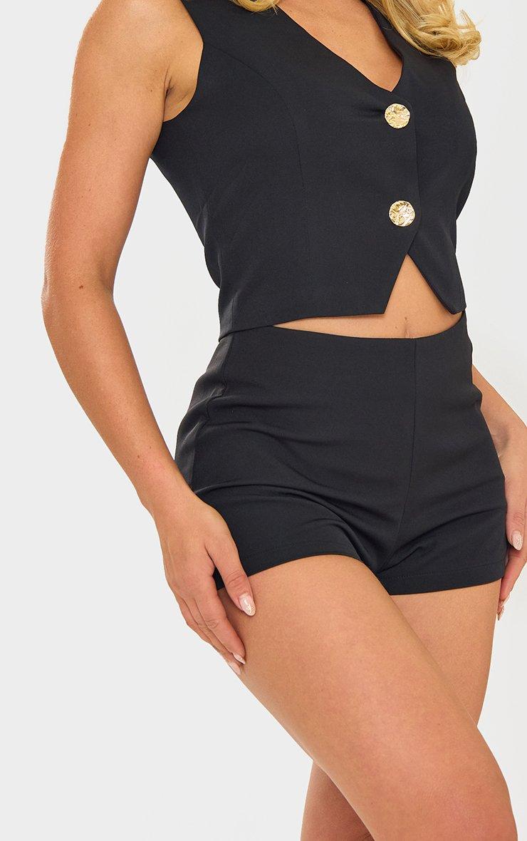 Turn up the edge, doll! Featuring sleek black woven fabric with high rise and tailored detailing, these booty shorts bring bold, chic vibes perfect for standout summer looks.