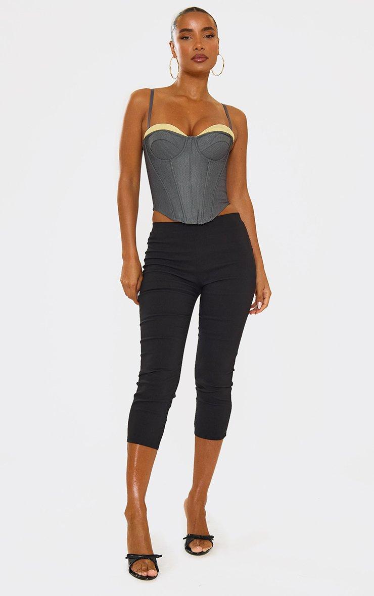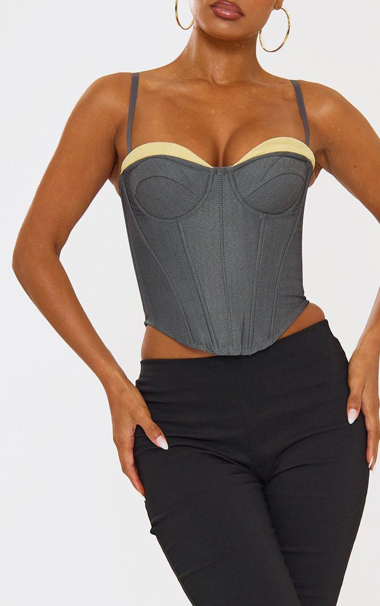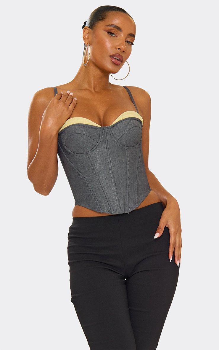 Own the night, doll! Featuring sleek black fabric, this corset top pops with strappy contrast cup detailing for a bold, chic finish packed with attitude.