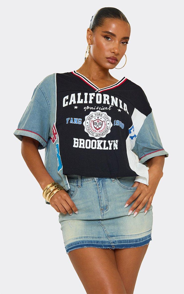 Serve sporty sass, doll! Featuring sleek black fabric, this v-neck boxy jersey pops with clean detailing for a bold, chic finish full of attitude.