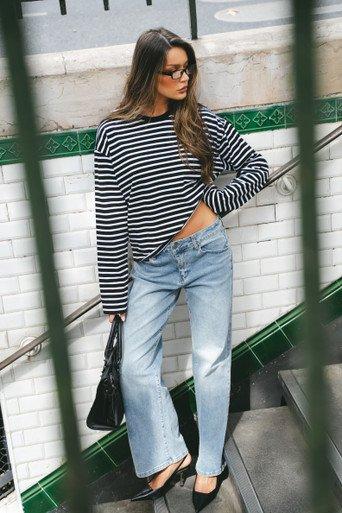 Off-duty days call for denim with effortless it-girl energy. Featuring blue wash denim material with low rise fit and wide leg detailing. Relaxed yet chic—style with a cropped tee and trainers or a fitted top and heels for plans, doll.