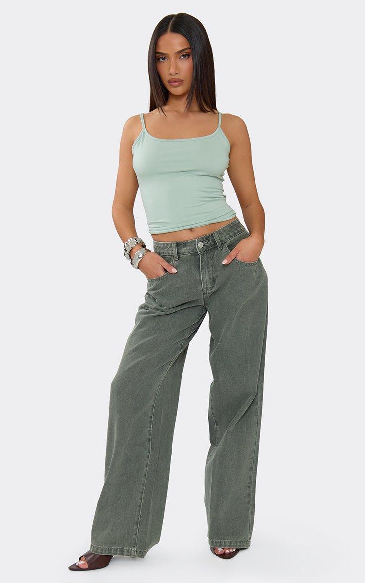 Upgrade your off-duty wardrobe with this statement khaki denim skirt. Designed with a flattering low-rise waist and structured seam detailing, this khaki denim skirt gives classic denim trend-led edge. The mini length keeps the look flirty and versatile, perfect for dressing up or down all year round. Style with a fitted crop top and trainers for effortless daytime vibes, or pair with a corset top and boots for a sleek evening look when thinking about how to wear a denim skirt.