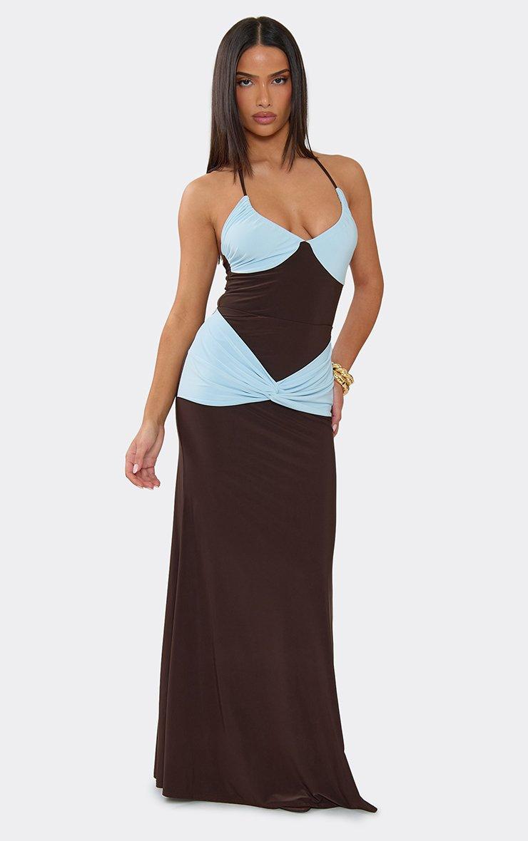 Level up your holiday rotation in brown material featuring contrast knot detailing and panelled design. This sharp, high-octane maxi skirt delivers a total "boho-chic" aesthetic for a major it-girl finish. Style with a matching crop top and gold jewelry for a polished vibe.