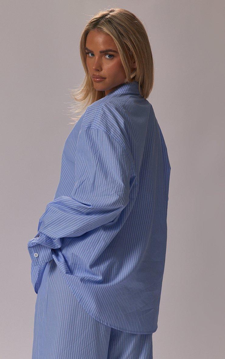 Level up your office-to-out look. Featuring blue stripe crinkle poplin material with oversized long sleeve detailing. Team with denim shorts and fresh kicks for the ultimate cool-girl vibe.