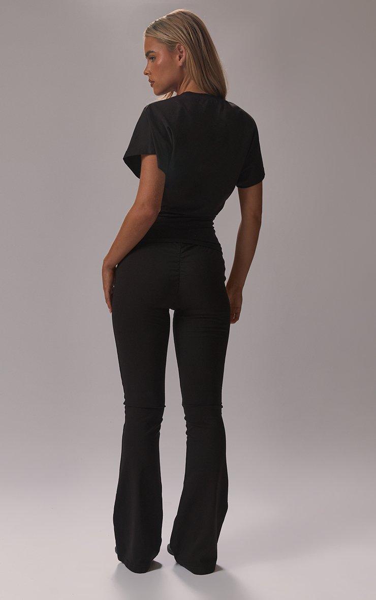 Get ready to serve looks at your next big night out. Featuring black woven material with ruched back detailing and a flared leg fit. Team with a corset top and your go-to stiletto heels for a vibe that is totally effortless.