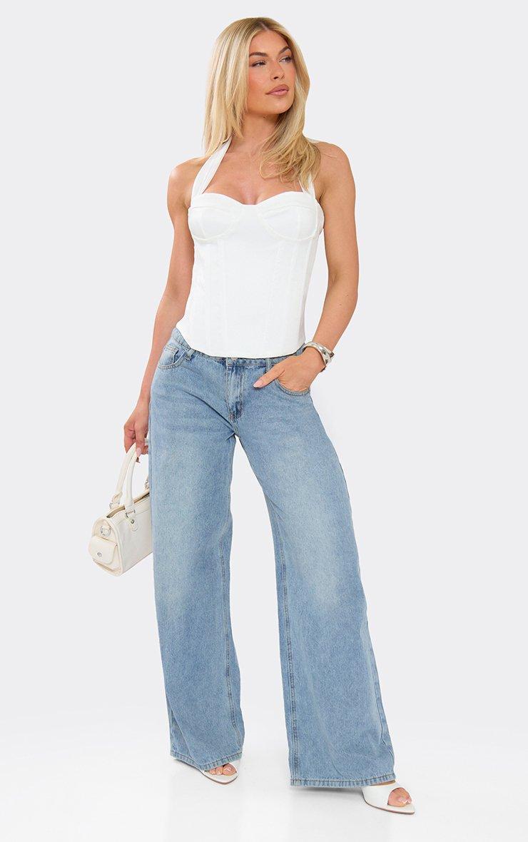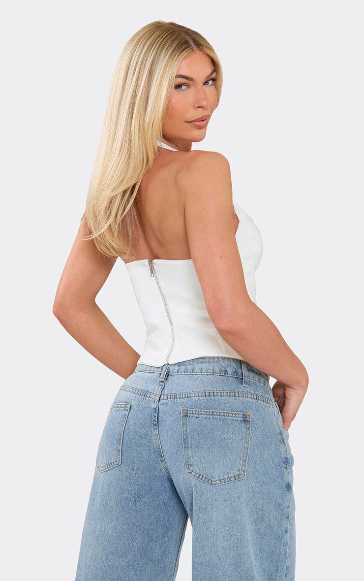 Contrast Chiffon Halterneck Cupped Corset Top In White