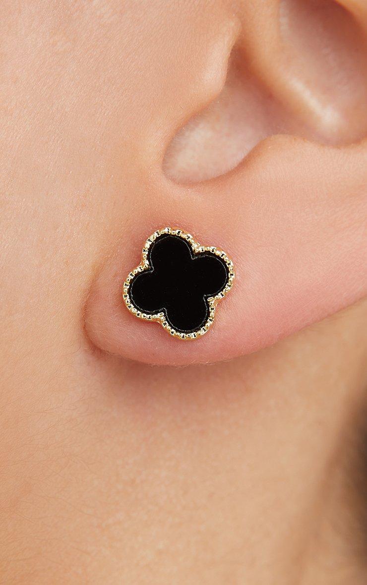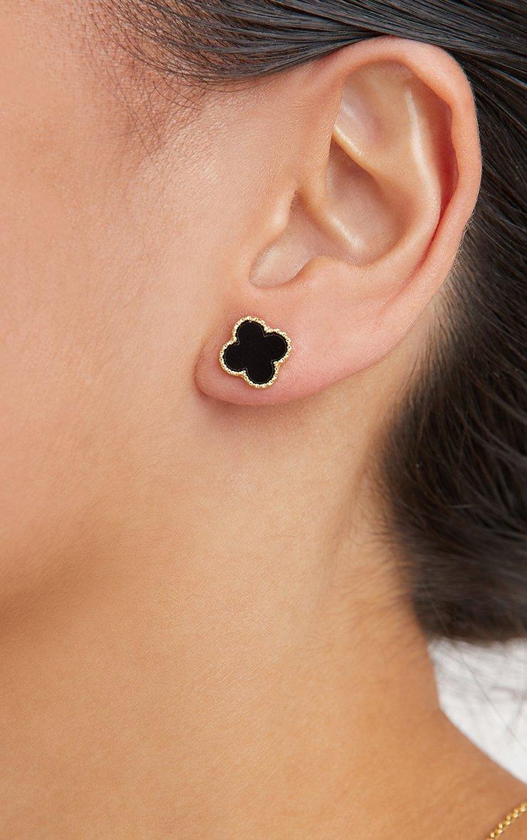 Get that expensive look without paying the expensive tag. Featuring a black and gold material, with clover detailing and a stud earrings design.