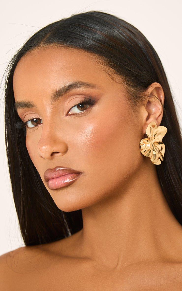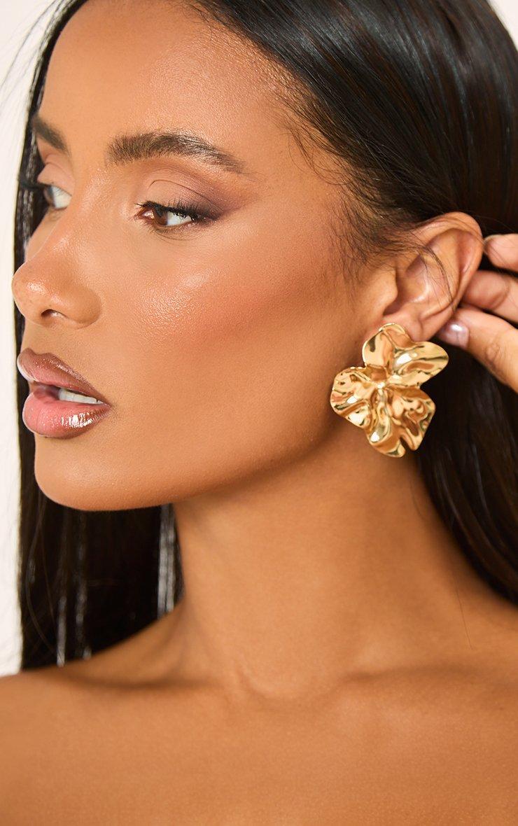 Bold and beautiful, doll. Featuring a gold-tone material with an oversized flower design, this stud earring is the perfect statement piece to elevate any look with a touch of chic elegance!