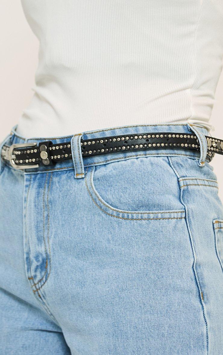 Stud Detail Thin Biker Belt In Black Faux Leather