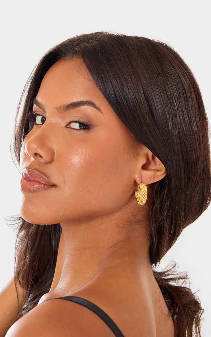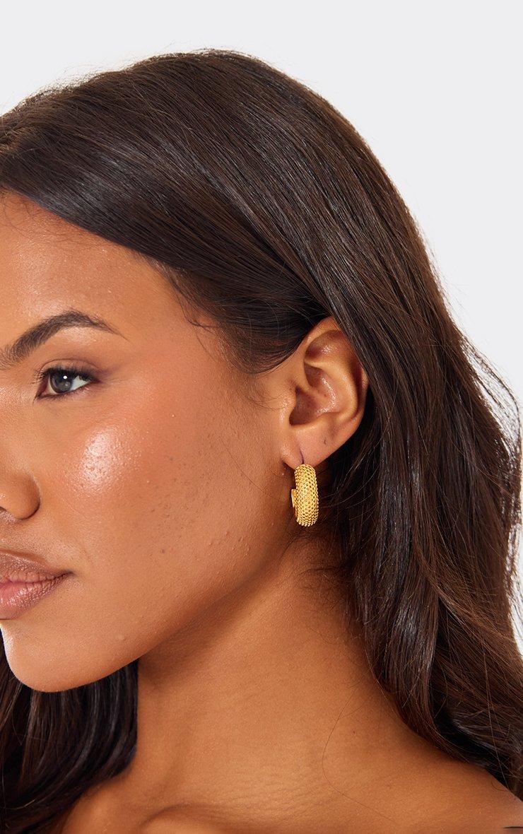 Chic vibes, doll. These gold hoop earrings with textured detailing are giving bold, statement energy, perfect for adding instant sparkle to any outfit.