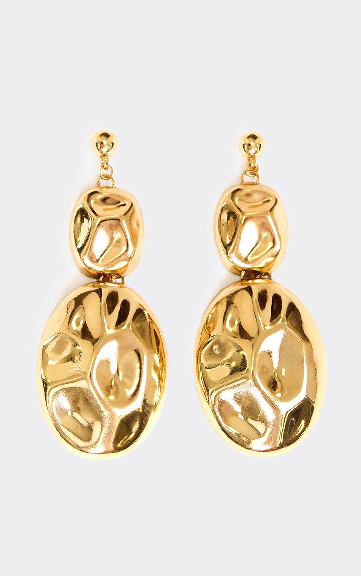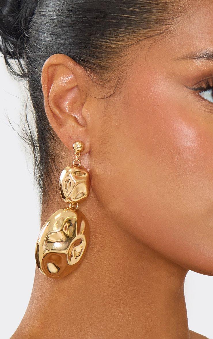 Turn heads, doll! In a royal gold, these drop stud earrings dazzle with textuured detailing for a bold, chic finish full of attitude.