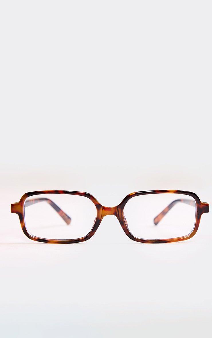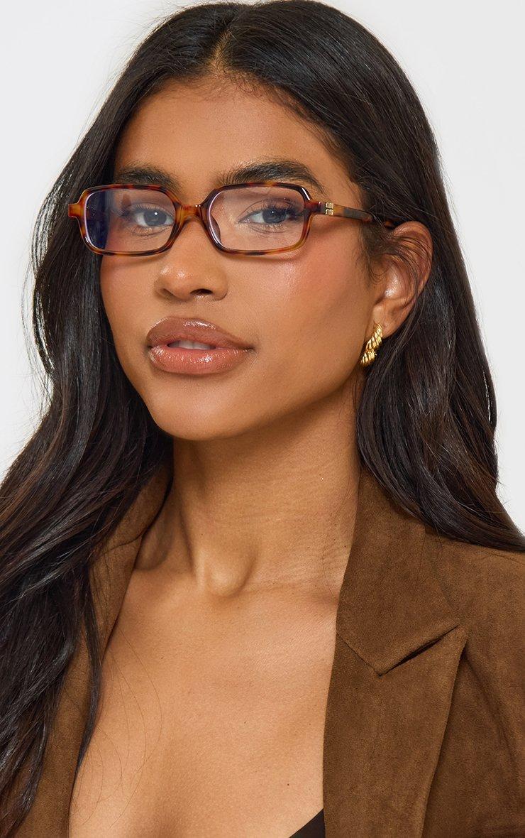 Rectangle Shaped Clear Lense Glasses In Brown Leopard Print