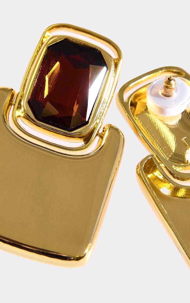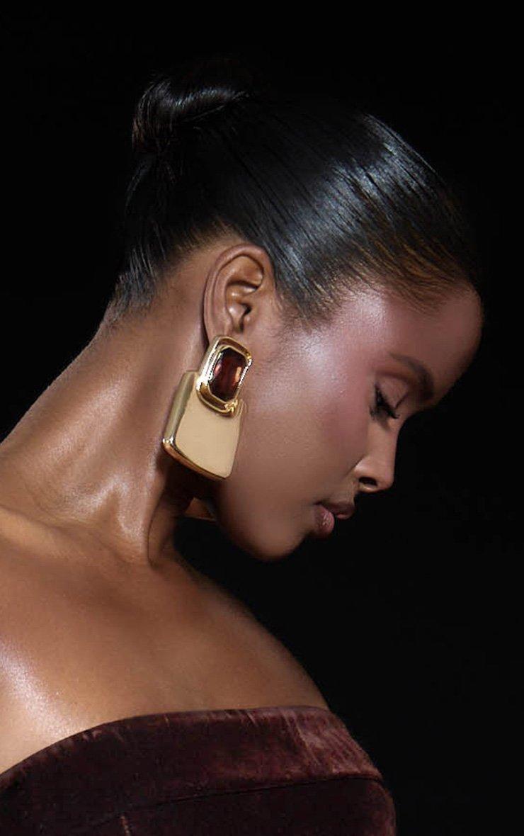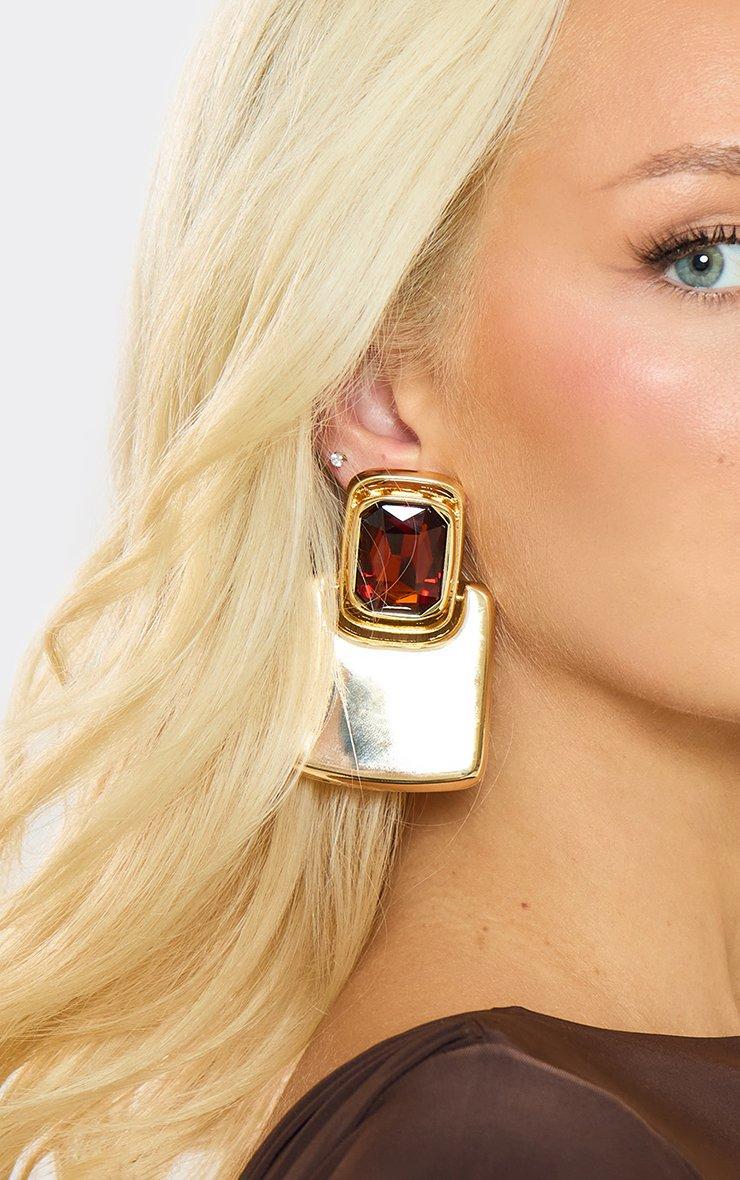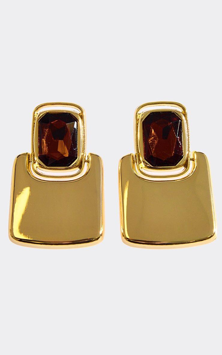 Oversized Gem Detail Square Drop Earrings In Brown And Gold