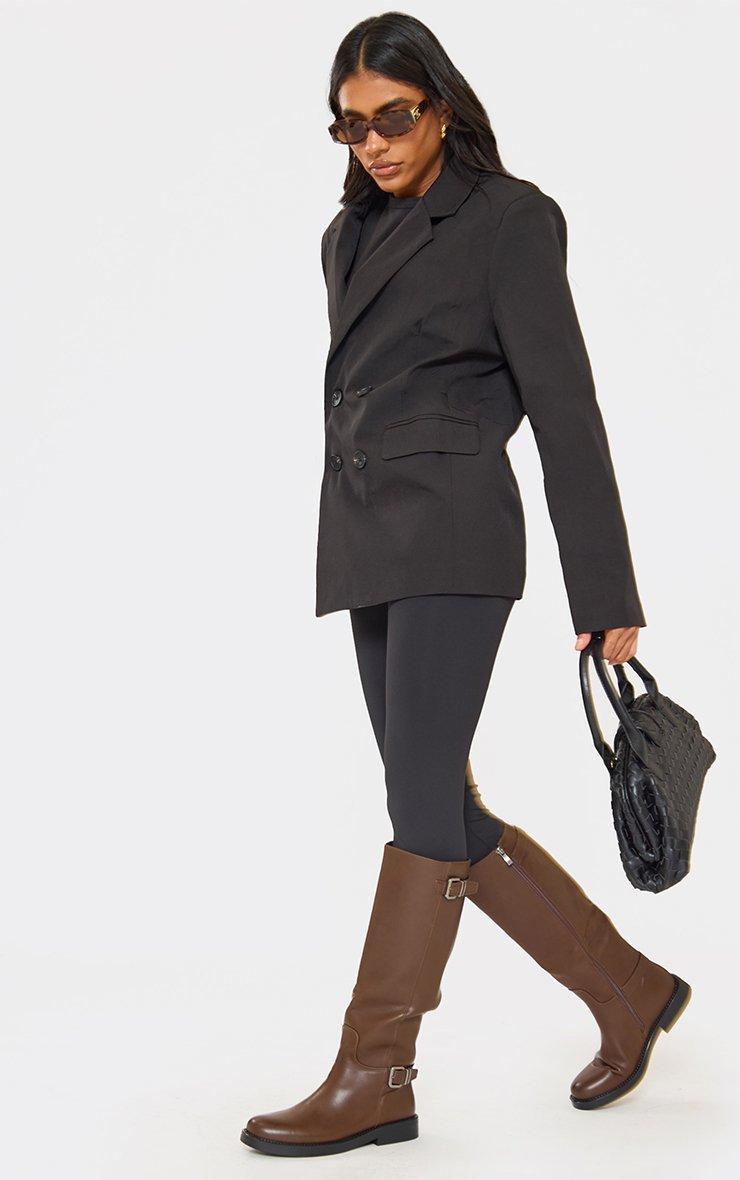 Bring classic-chic vibes, doll! Crafted in brown faux leather, these knee-high boots feature side buckle detailing, giving your look a bold, statement-ready finish.