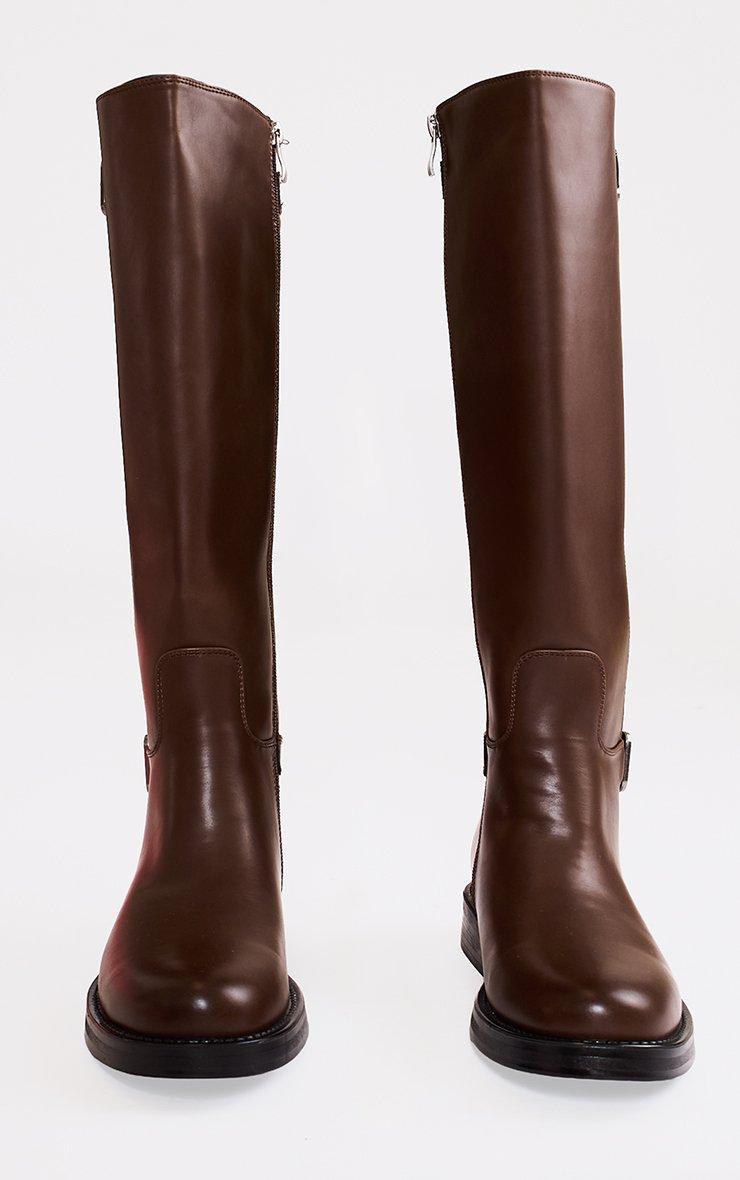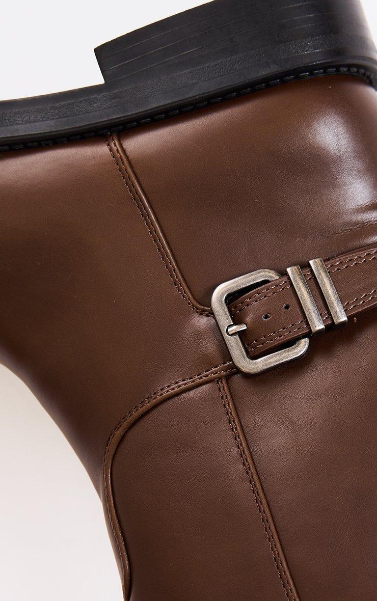 Entry Side Buckle Detail Knee High Boot In Brown Faux Leather