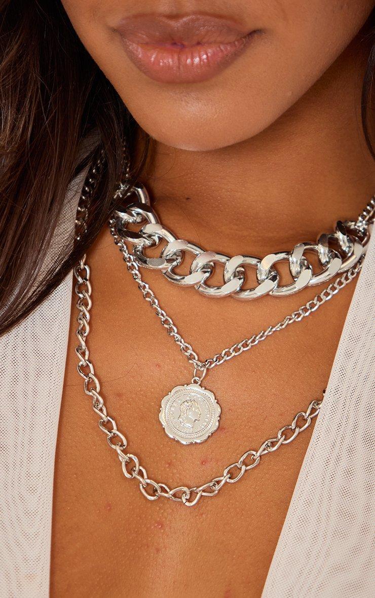 Pendant Detail Multi Chunky Chain Necklace In Silver