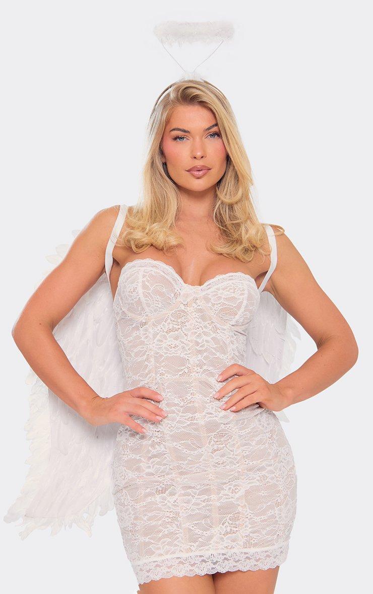 Perfect for making a statement at any party or event, these wings are featuring a white faux feather material with oversized wing detailing for that dramatic, playful vibe, doll.