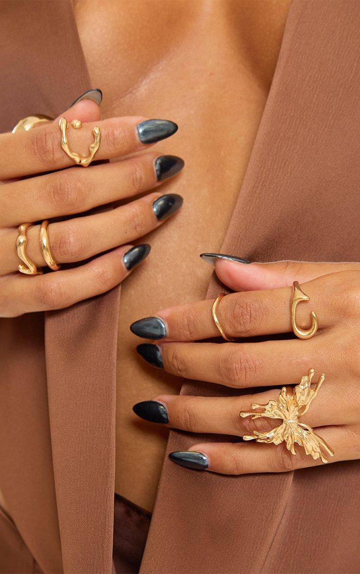 Butterfly Wave Detail Multi Ring Pack In Gold