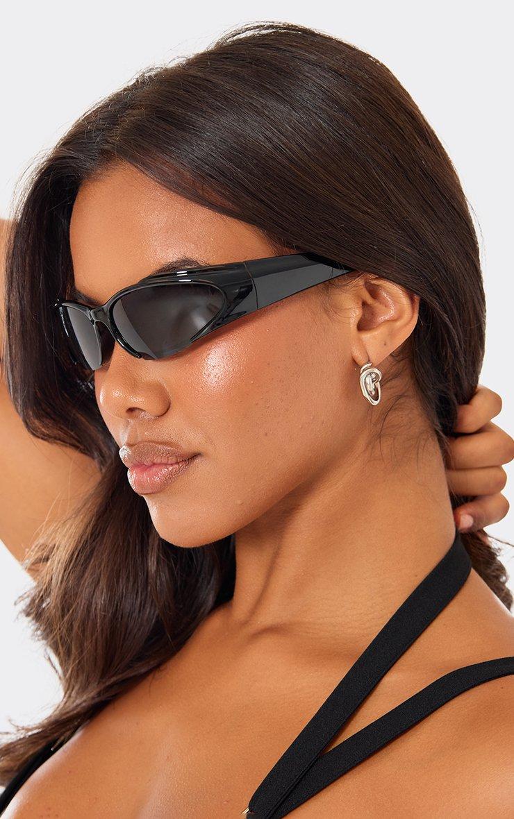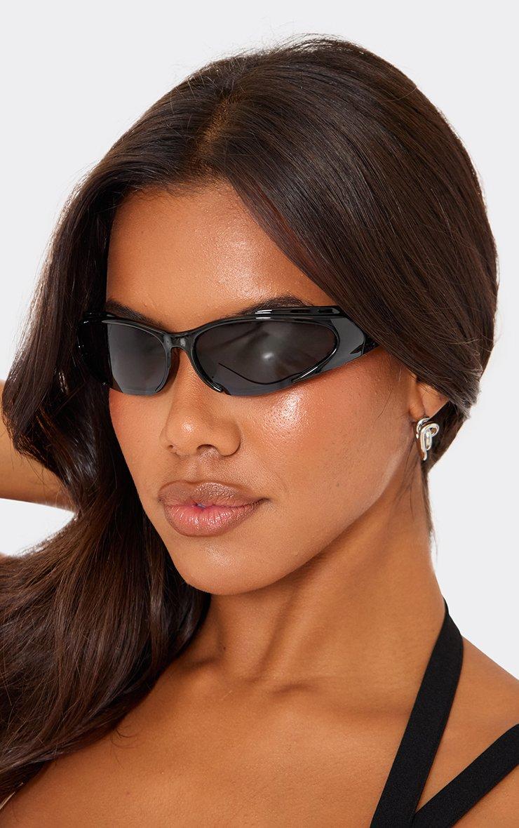 Bold vibes, doll. These black wrap around sunglasses with chunky frame detailing are giving statement energy, perfect for adding instant edge to your look.